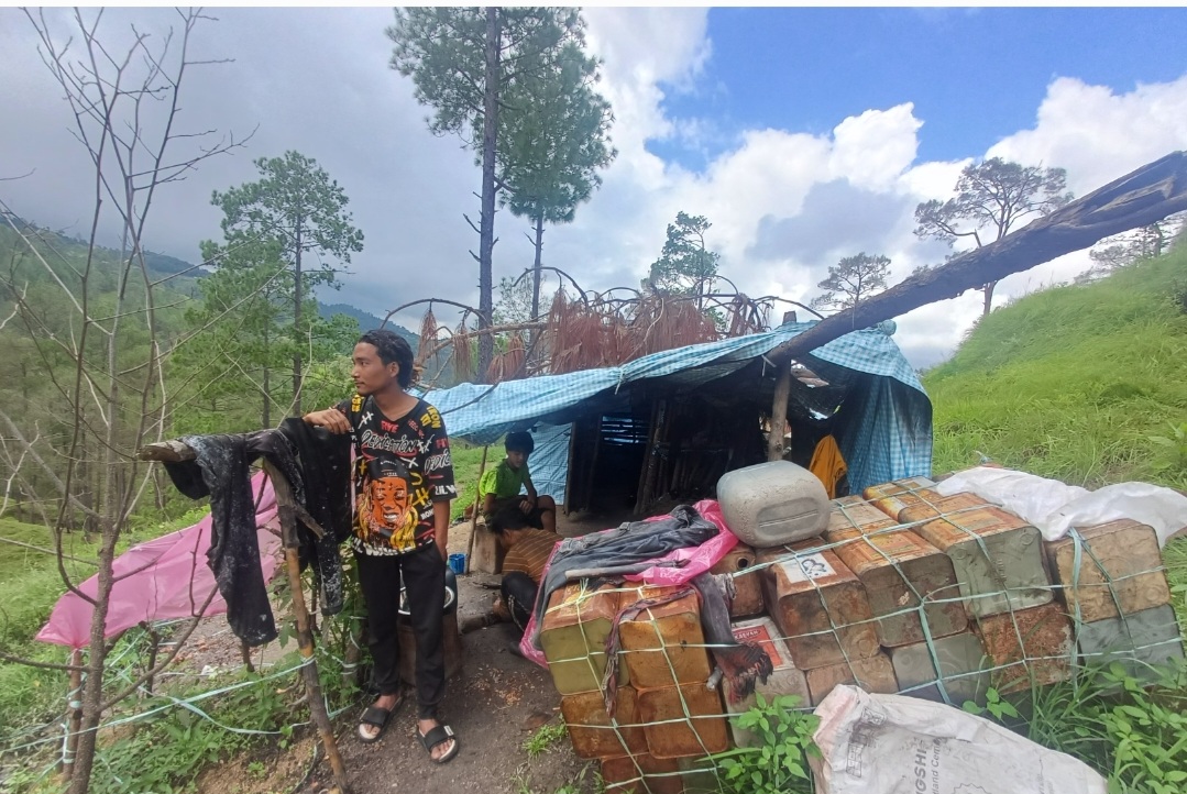 डडेल्धुरा -- डडेल्धुराको गन्यापधुरा गाउँपालिका–१ को सल्लेरी जंगल त्यहाँ जंगलको बिचमा एक थान त्रीपालको छानोमुनी दिनरात विताइरहेका छन् चार युवा। लुम्बिनी प्रदेश,घोराही (दाङ) बाट खोटो निकाल्न यहाँ आएका उनीहरू करिब चार महिनादेखि यही जंगलमा सल्लाको रुख चाहारेर खोटो निकाल्ने काम गर्दैछन्।