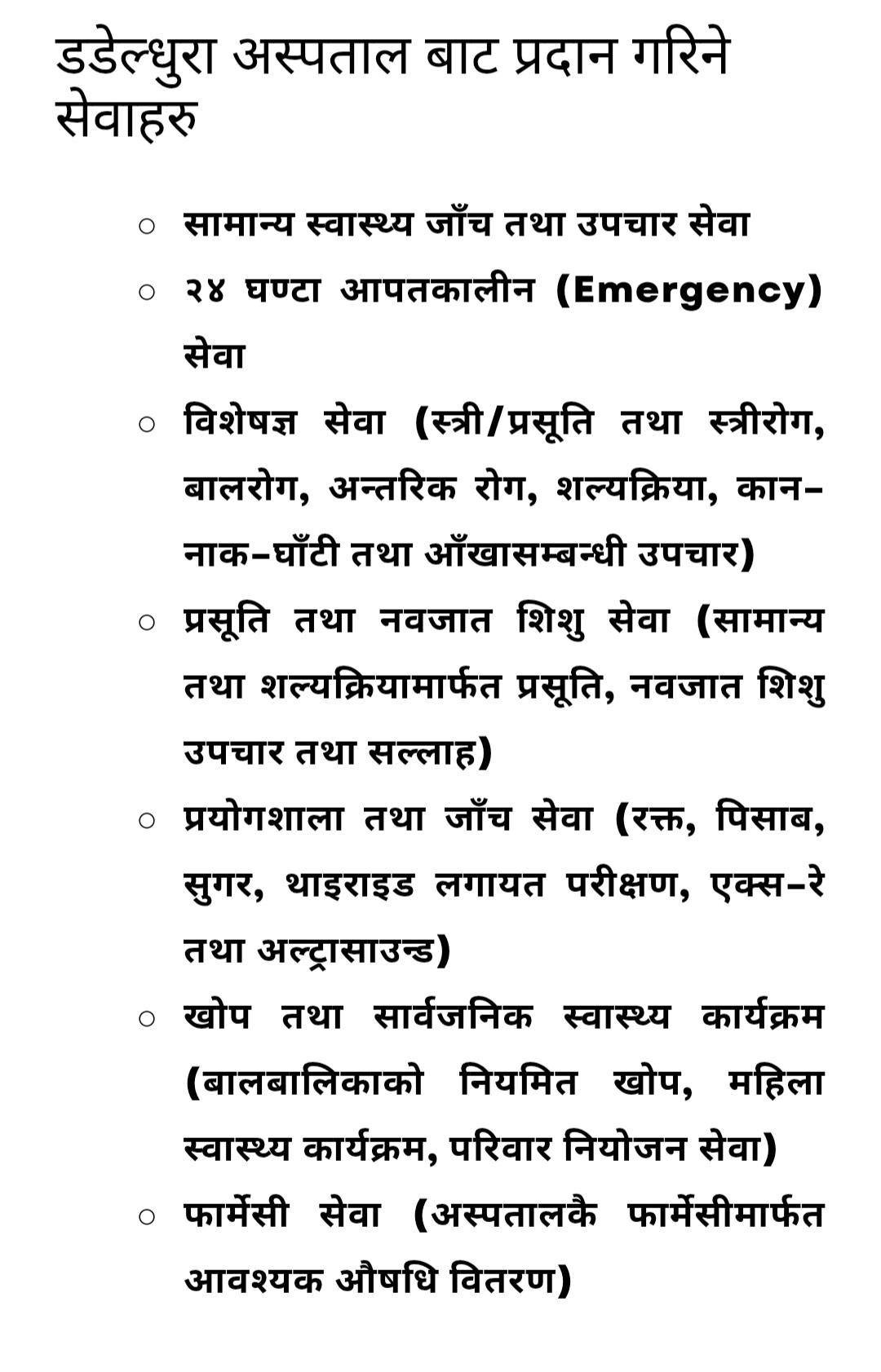 डडेल्धुरा । ‘व्यवसायीक र शृजनशिल प्रशासन, विकास, समृद्धि र सुशासन’ भन्ने नाराका साथ डडेल्धुरामा २२औं निजामती सेवा दिवस २०८२ भव्य रूपमा मनाइएको छ। जिल्ला प्रशासन कार्यालयको आयोजना र कर्मचारी मिलन केन्द्रको सहयोग तथा समन्वयमा दुई दिने कार्यक्रम गरी यो दिवस मनाइएको हो। यस अवसरमा सामाजिक उत्तरदायित्व, अन्तर्गत स्वास्थ्य, र वातावरण संरक्षणका र खाद्यान्न वितरण कार्यक्रमहरू सम्पन्न भएका छन्।