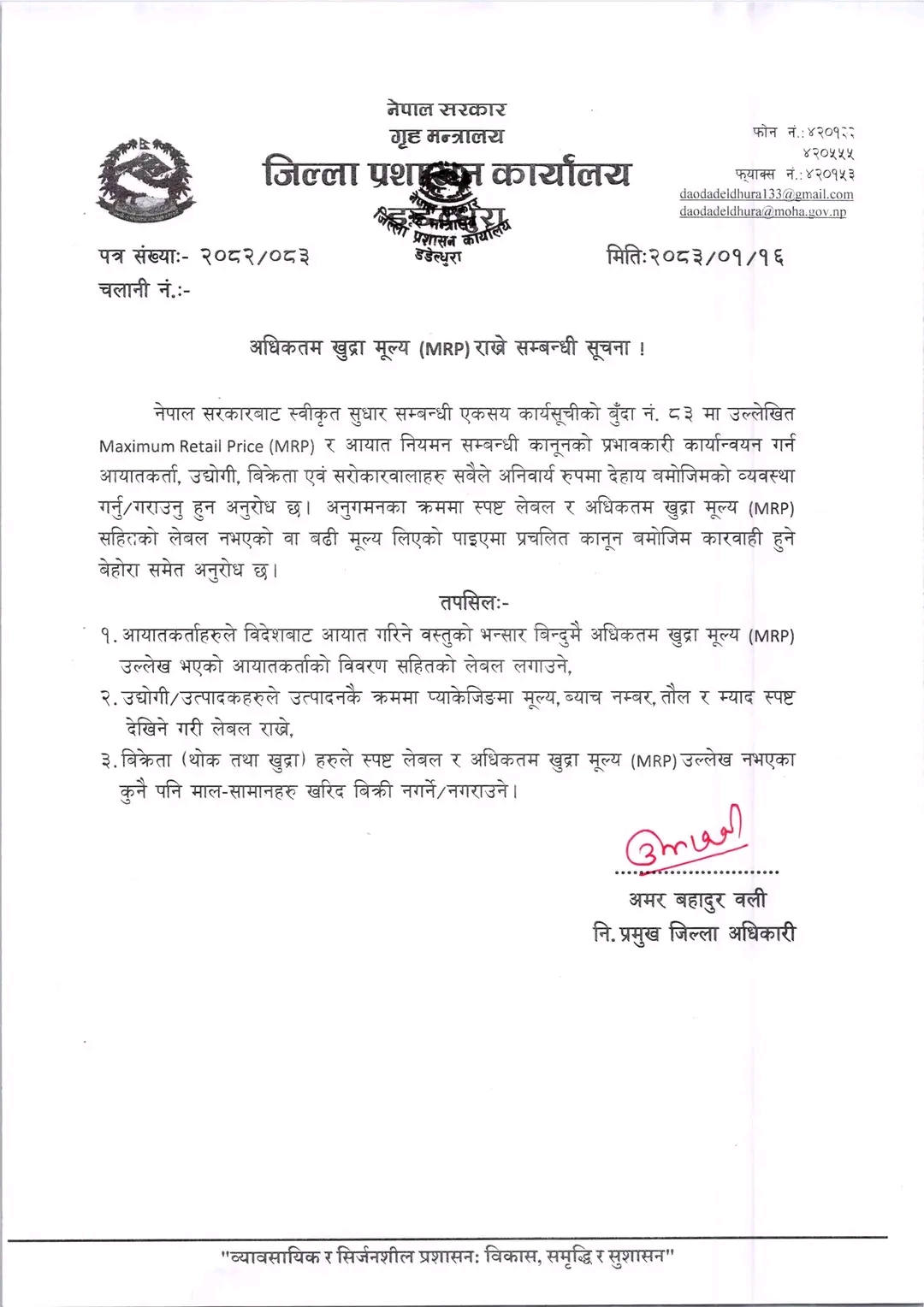 डडेल्धुरा प्रशासनको चेतावनी: लेबल नभएका सामान बिक्री गरे कारबाही हुने